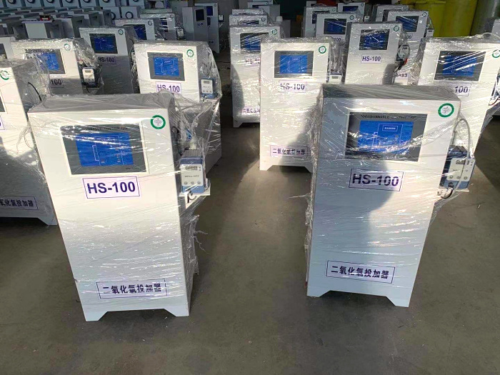 一种操作简单、高转化率、高纯度、多用途、环保型化学法中、小型二氧化氯多级发生器。这种二氧化氯发生器,是由釜式反应器通过耐酸导管和水射式真空机组组成。釜式反应器采用的是两级或多级反应器,主反应釜内设有空气分布器,副反应釜设置了平衡管,使反应更彻底,反应后的残液可达标排放。生成的二氧化氯制得水溶液,也可以制得稳定二氧化氯溶液。
