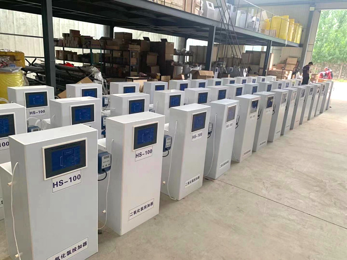 一种操作简单、高转化率、高纯度、多用途、环保型化学法中、小型二氧化氯多级发生器。这种二氧化氯发生器,是由釜式反应器通过耐酸导管和水射式真空机组组成。釜式反应器采用的是两级或多级反应器,主反应釜内设有空气分布器,副反应釜设置了平衡管,使反应更彻底,反应后的残液可达标排放。生成的二氧化氯制得水溶液,也可以制得稳定二氧化氯溶液。